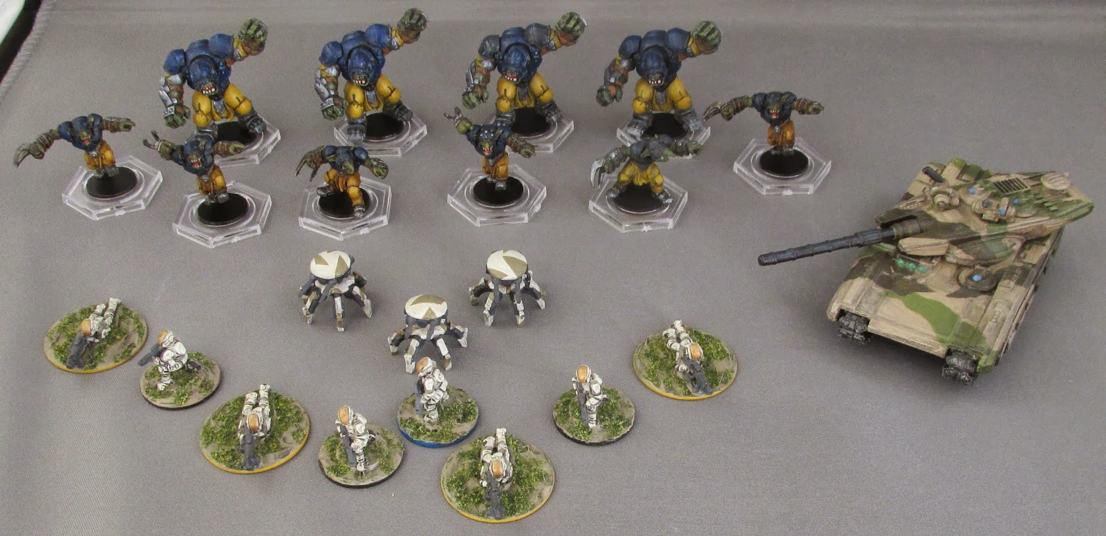 At the beginning of the third round we instituted a rule that at the beginning of the turn if a D12 rolled higher than the total number of models left on the table then the game ends (it was getting late). There was a fifth turn, but nothing really changed. The roll ended the game before a sixth turn could be played and we tallied the Priority of the remaining units, he had two, I had four, giving me a rather Pyrrhic victory.