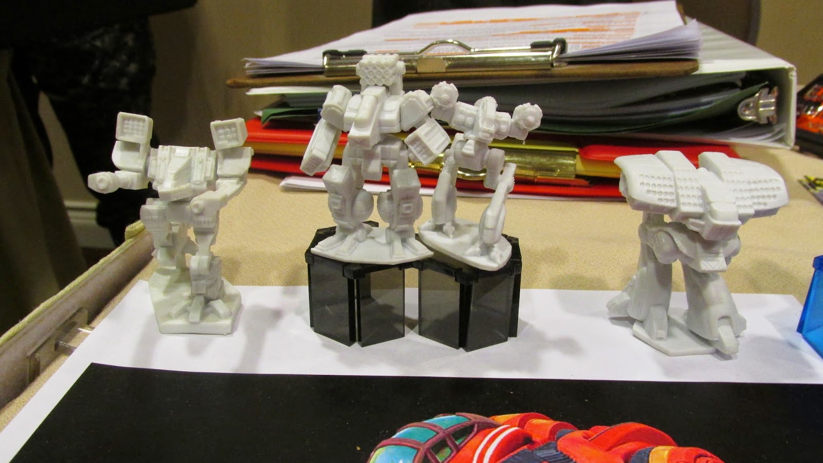 This game was a mirrored force engagement just to remind us how the game works. As I mentioned I've been reading a lot of other rules so they're starting to get jumbled in my head. Both sides had a Lt Infantry CHQ, 3x Lt Infantry, 2x Mobile Infantry, 1x Recon, and 1x Lt Artillery. I was using Dark Realm Miniatures Pax Arcadia figures for my Valiant Humans and Alexander used a mix of my DRM Andrayada, Khurasan Mechanoids, and a CAV Specter for the Robot Menace. I realized I didn't have any appropriate models for either side's light artillery so subbed the Pax Arcadia Thunderstrike artillery piece and the CAV Specter for the Robot Menace. Same for the robot's mobile infantry, so I tossed a couple of my 15mm Mechanoids on the table to represent those. I see some purchases in my future...